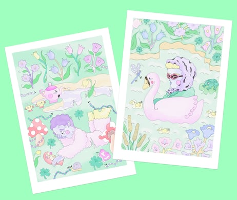 Duo "Bord de rivière" & "Diva sur cygne" • Prints riso A4